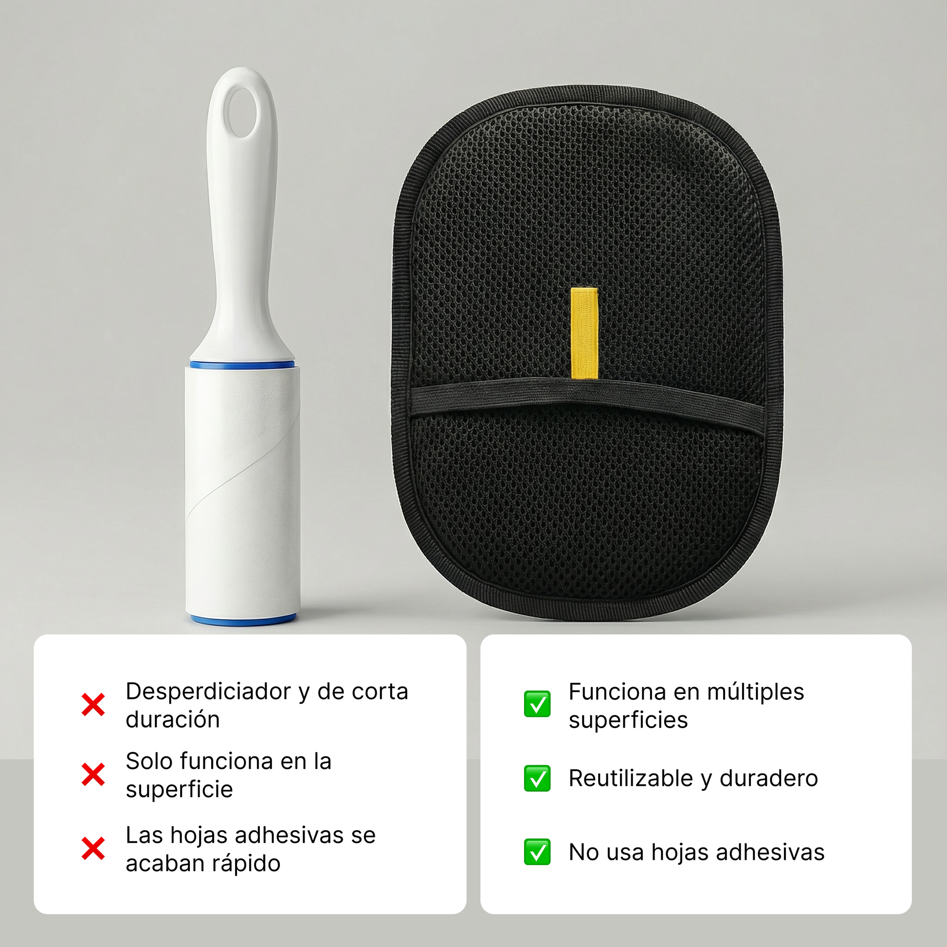 Este guante extrae el pelo que se esconde en lo profundo del tejido.